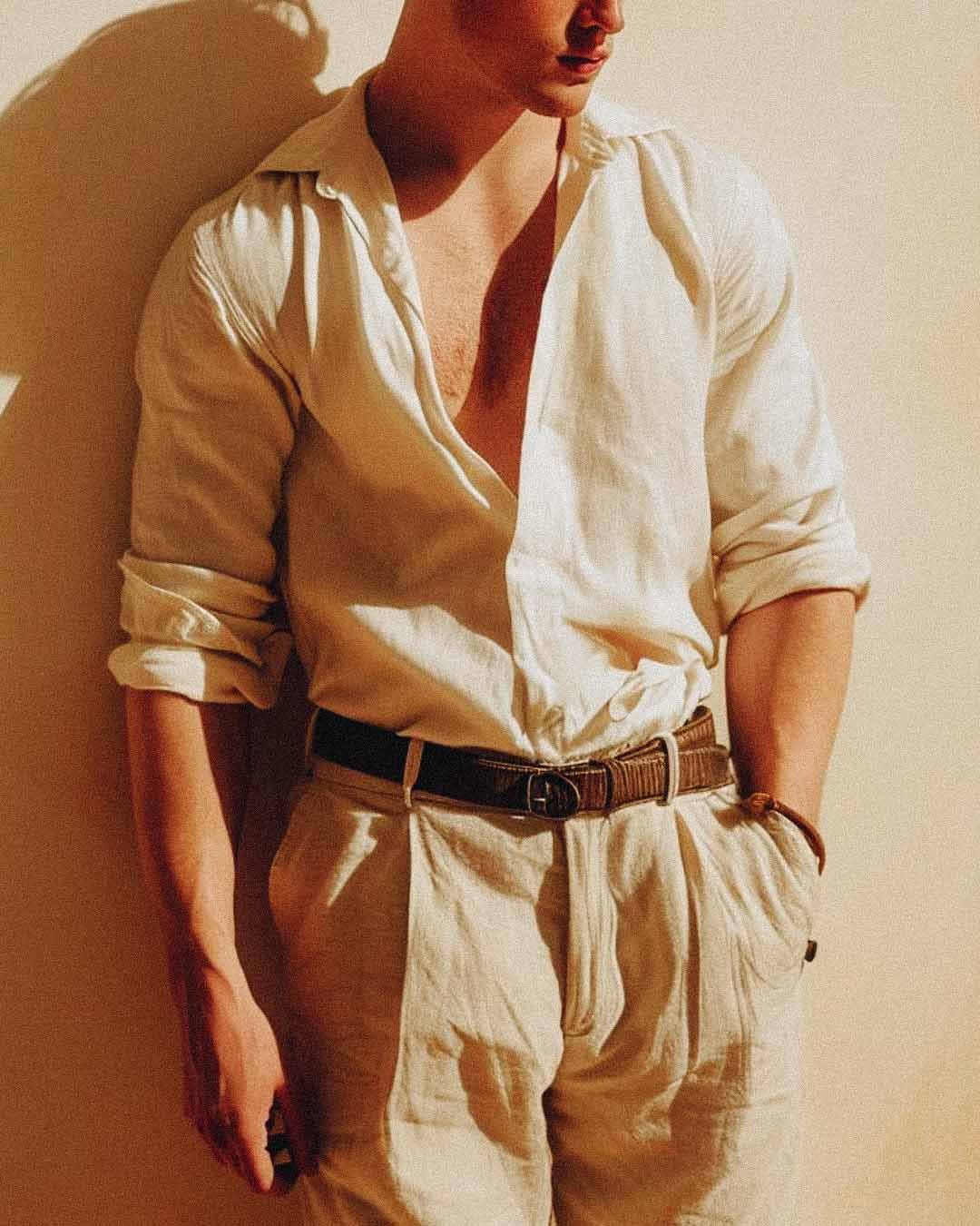 think flowing dress/fabrics, soft satin, button ups for the men, cream, red, burgundy colors*